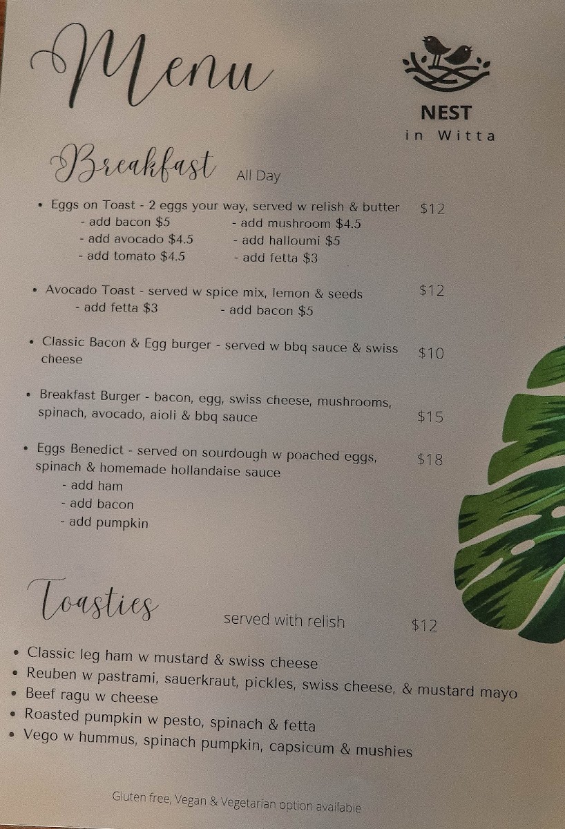 Nest in Witta Menu